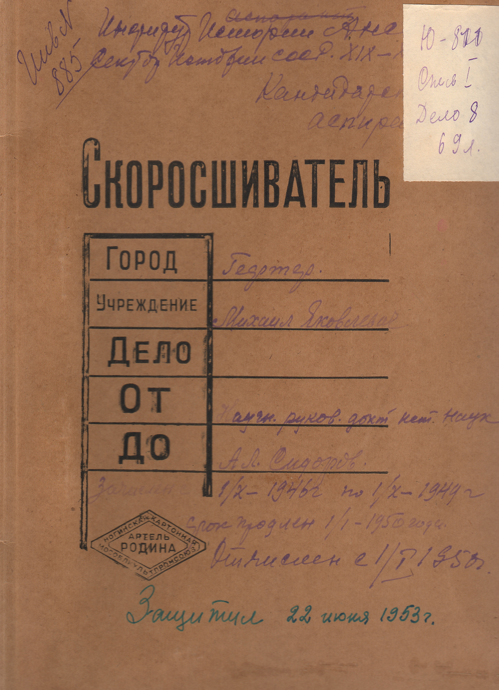 Но начну с 1940-х, хотя и названных роковыми, в первую очередь, из-за Великой Отечественной войны, но это не значит, что они были очень счастливыми и удачливыми, в том числе и для нашей семьи, во второй половине этого десятилетия. Внешне все выглядело вполне пристойно. Хотя могло и помешать то, что Михаил Яковлевич ушел из аспирантуры МГУ, где его научная карьера складывалась благополучно. В частности, поскольку его руководителем был будущий академик Исаак Израилевич Минц — вполне сталинский историк, бывший комиссаром одной из частей Корпуса Червонного казачества во время Гражданской войны. Может быть, он был человеком не самым приятным и не самым достойным высокого звания ученого; при этом относился к отцу неплохо. Так и не закончив аспирантуру МГУ, Гефтер стал работать помощником секретаря ЦК ВЛКСМ Мишаковой – ярой сталинистки и, кажется, довольно вздорной женщины. Уйдя с комсомольской работы, он поступил в аспирантуру Института истории к профессору Сидорову – это был удачный момент в его жизни. Важно то, что Михаил Гефтер занимался тем, что относилось к политически нейтральной теме — историей империализма в России предреволюционного периода, с конца XIX века и первыми годами XX века, его политэкономической составляющей, связанной с тем, как сахарные и нефтяные монополии взаимодействовали с царским правительством. Эта тема, вероятно, была интересной, и в архивах находилось достаточно материалов, посвященных ей. Работая над диссертацией, Михаил Яковлевич познакомился в Ленинграде с профессором Борисом Александровичем Романовым, одним из известных специалистов по эпохе позднего царизма, начала империалистического периода в жизни России, и с другими питерскими коллегами, учениками Романова, с которыми он поддерживал долгие годы тесные, дружеские контакты. Защитил Михаил Яковлевич диссертацию в 1953 году, то есть не по окончании аспирантуры, а по прошествии 4–5 лет. По окончании аспирантского срока его взяли младшим научным сотрудником в Институт истории, директором которого вскоре стал Аркадий Лаврович Сидоров, его научный руководитель.